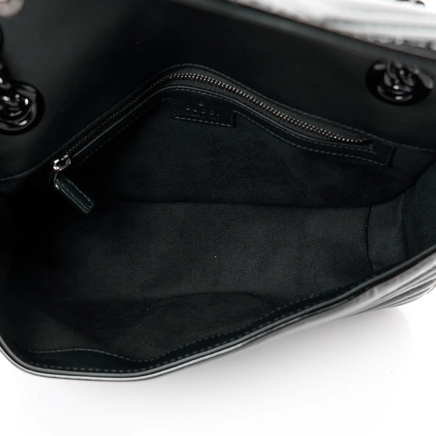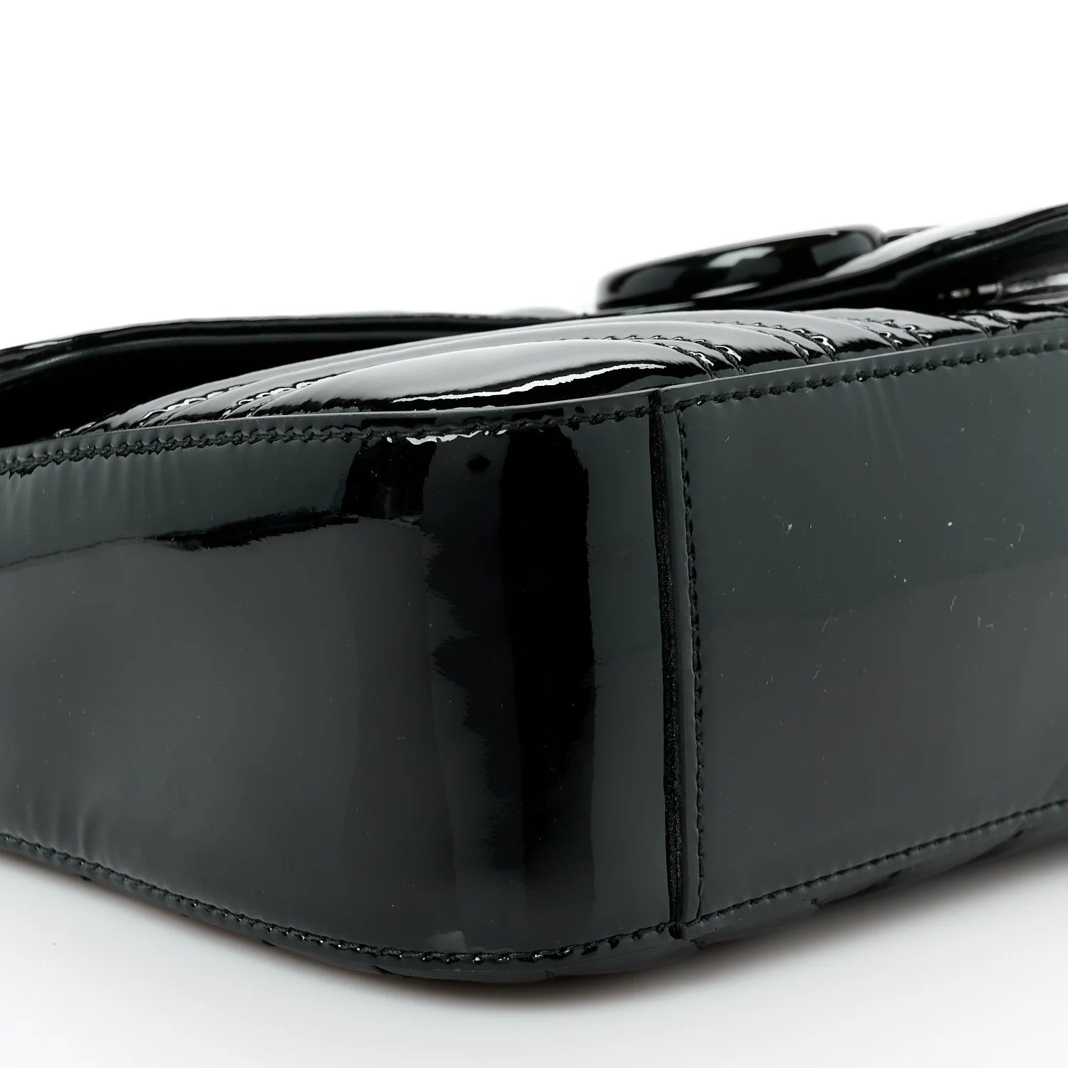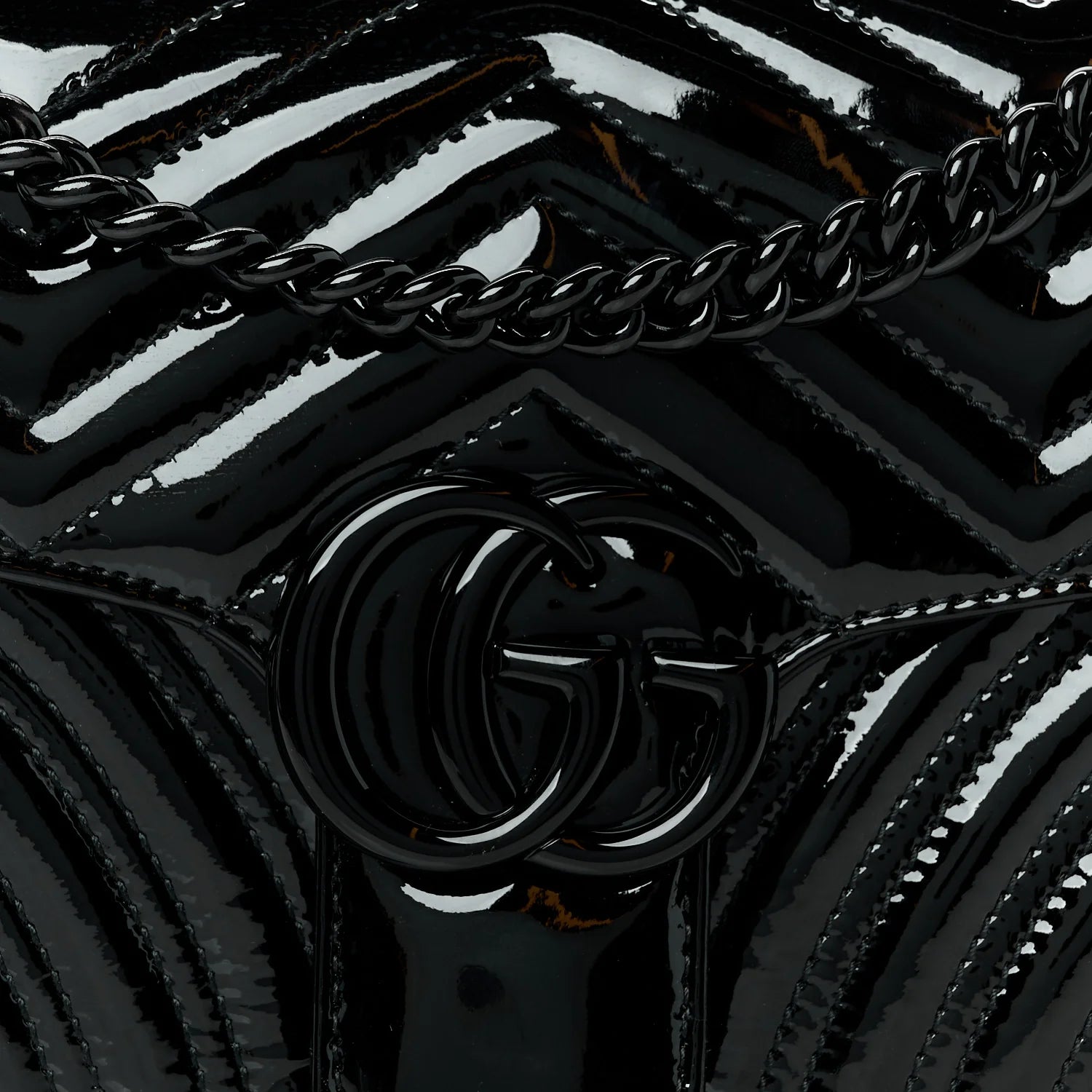 Gucci Marmont Monochrome Lackleder-Schultertasche, klein, schwarz, Matelassé • Gebraucht