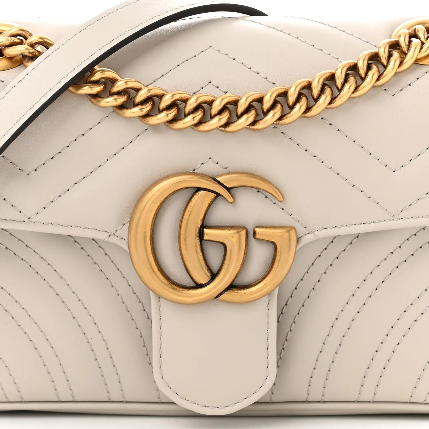 Gucci Marmont Kleine Damen-Schultertasche Matelassé 2024 Hellgrau • Gebraucht