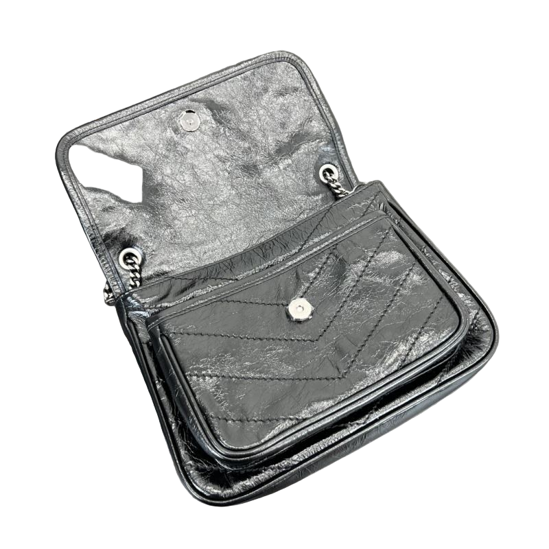 Saint Laurent Niki Baby Vintage Leder Slouchy Chain Bag Schwarz